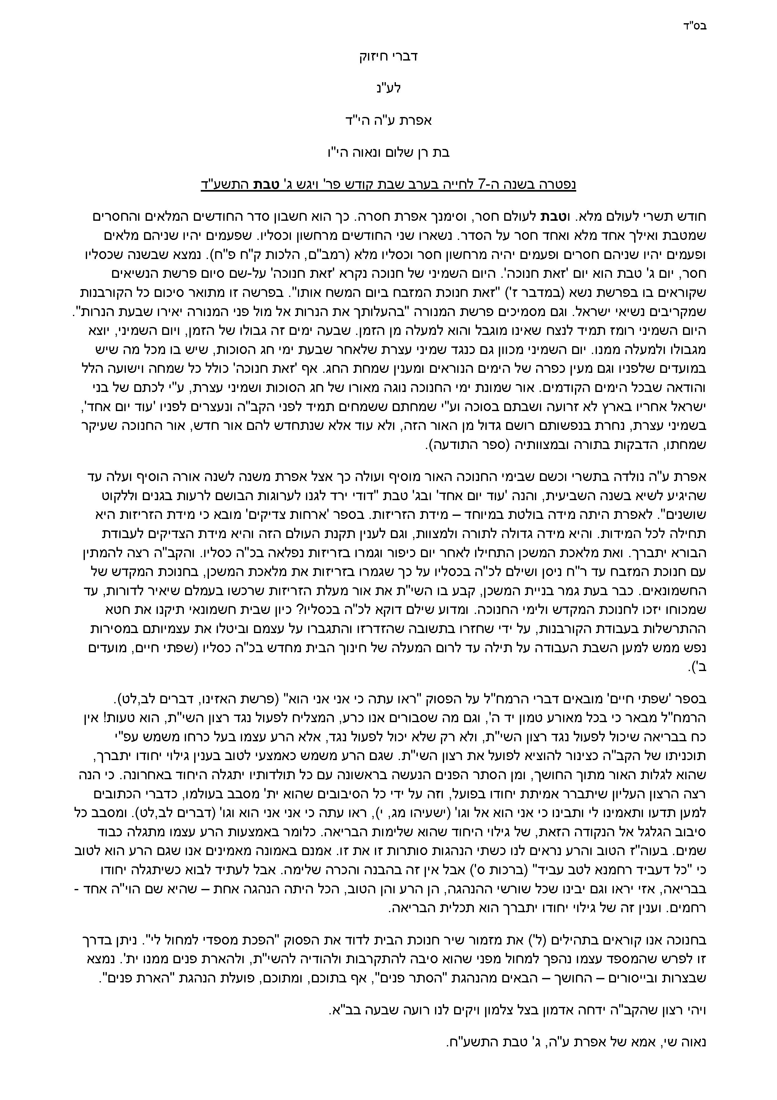 As follows Divrey-Chizuk of the mother of Efrat:
